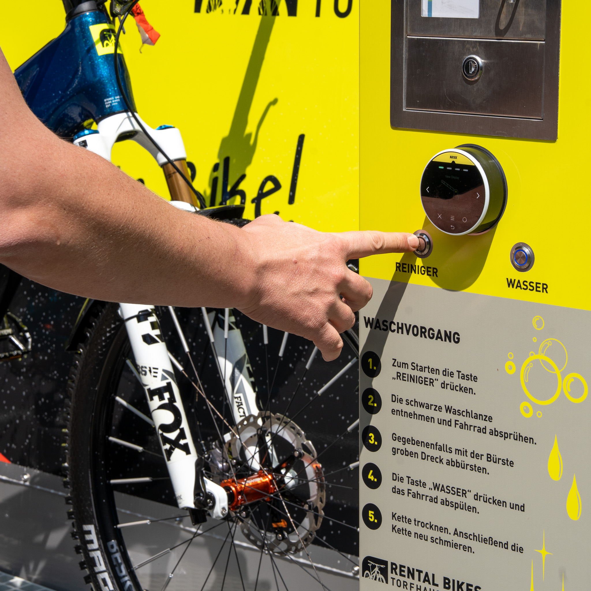 Sobald die Außen-Temperaturen dauerhaft über dem Gefrierpunkt liegen, steht die Bike-Waschstation rund um die Uhr für Dich zur Verfügung.