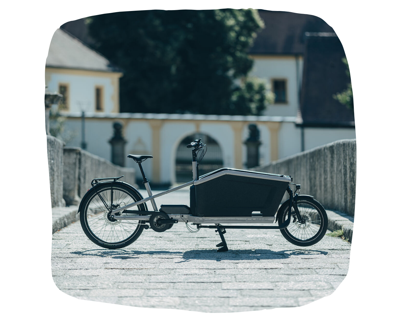 Das Cargo E-Bike hat einen recht großen Wendekreis, dadurch ist dieses Lastenrad eher für asphaltierte, relativ breite Wege gemacht. Der Vorteil: Sperrige und schwere Lasten können hiermit gut transportiert werden! Zulässige Gesamtlast ist: 220 kg.